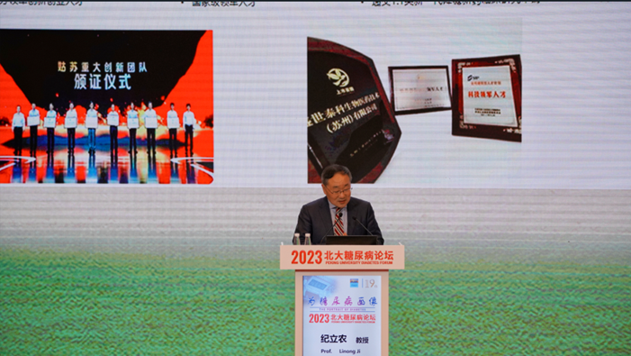 Professor Ji Linong delivers a presentation at the Peking University Diabetes Forum.